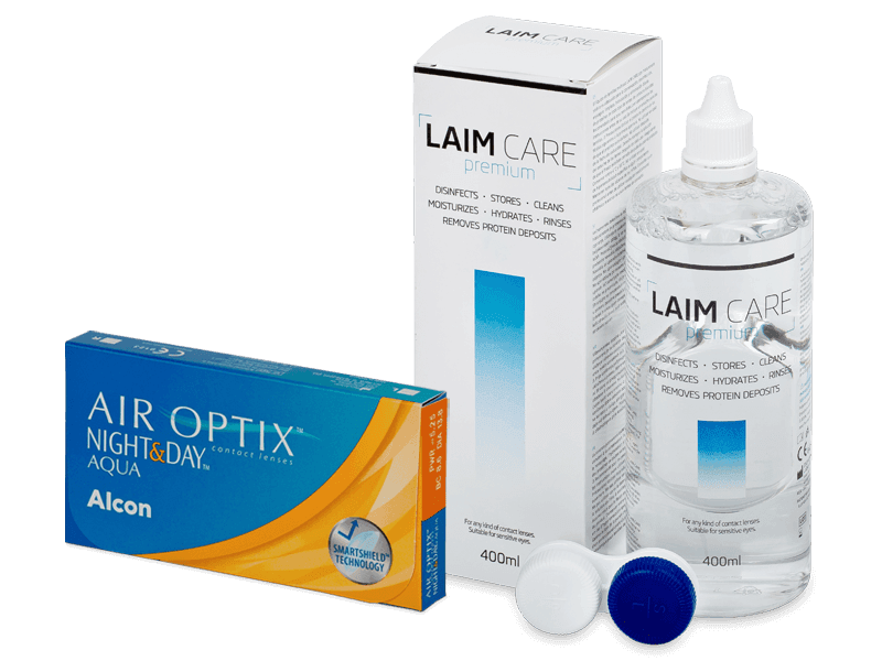 Air Optix Night and Day Aqua (6 линз) + Раствор Laim-Care 400 мл